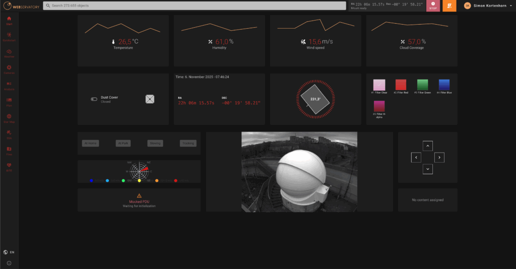 Webservatory® is designed to support your entire workflow – from controlling and monitoring the observatory to fully automated data generation. All your hardware is seamlessly integrated into one powerful system, eliminating the need for additional software or third-party drivers.